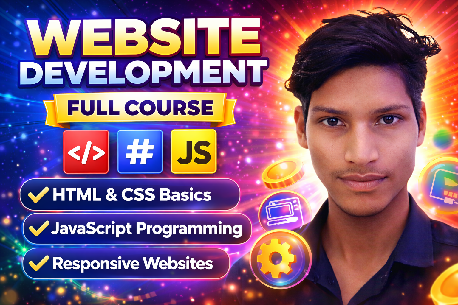 Is Website Development Full Course me aap HTML, CSS aur JavaScript ka use karke complete responsive & interactive websites banana seekhenge. Course zero se start hota hai aur real-world projects ke saath advanced concepts tak cover karta hai. Yeh course specially un students ke liye hai jo Web Development career start karna chahte hain Freelancing ya job-ready skills seekhna chahte hain Apni khud ki website banana chahte hain Course fully practical, project-based aur beginner-friendly hoga.